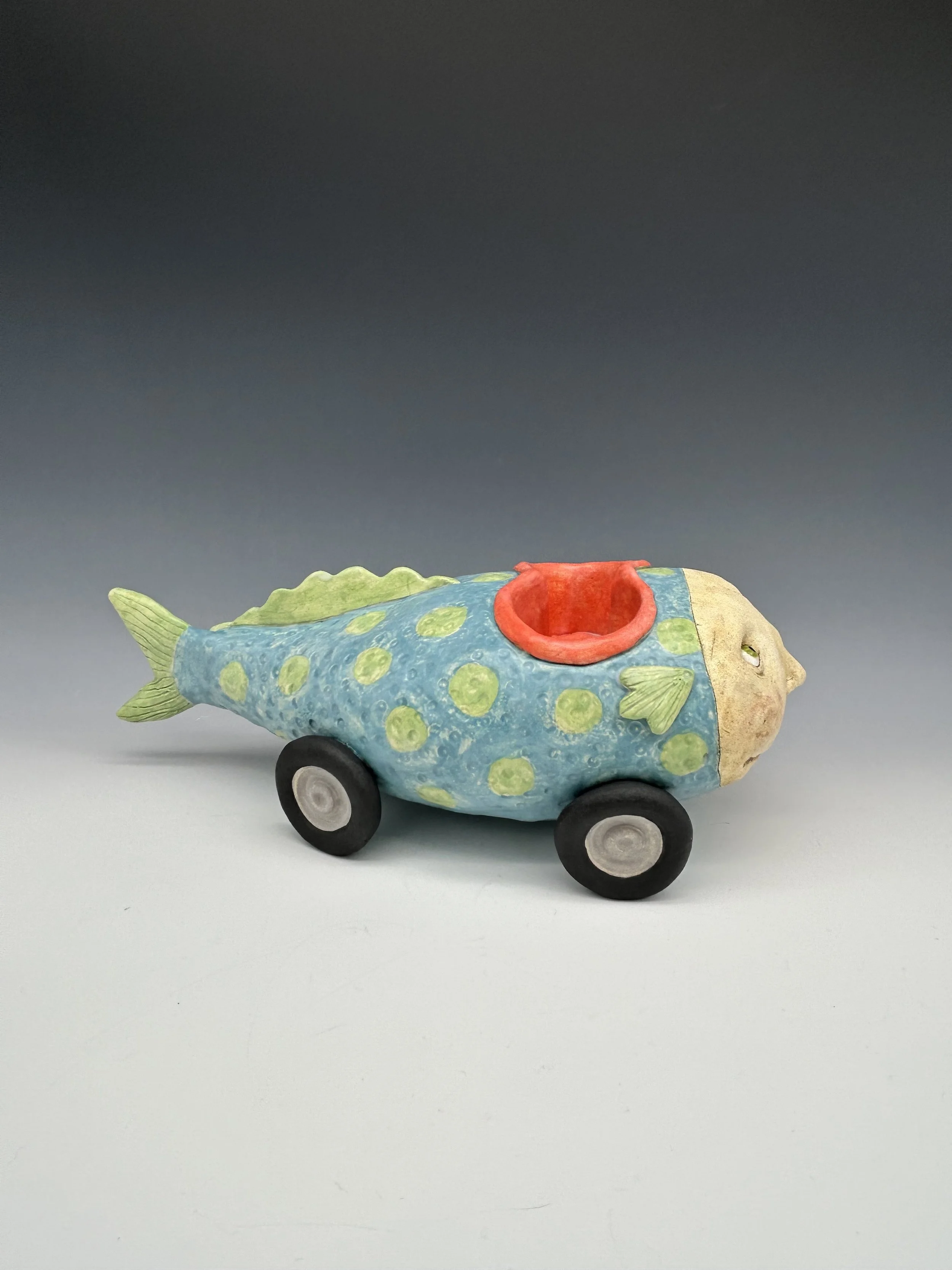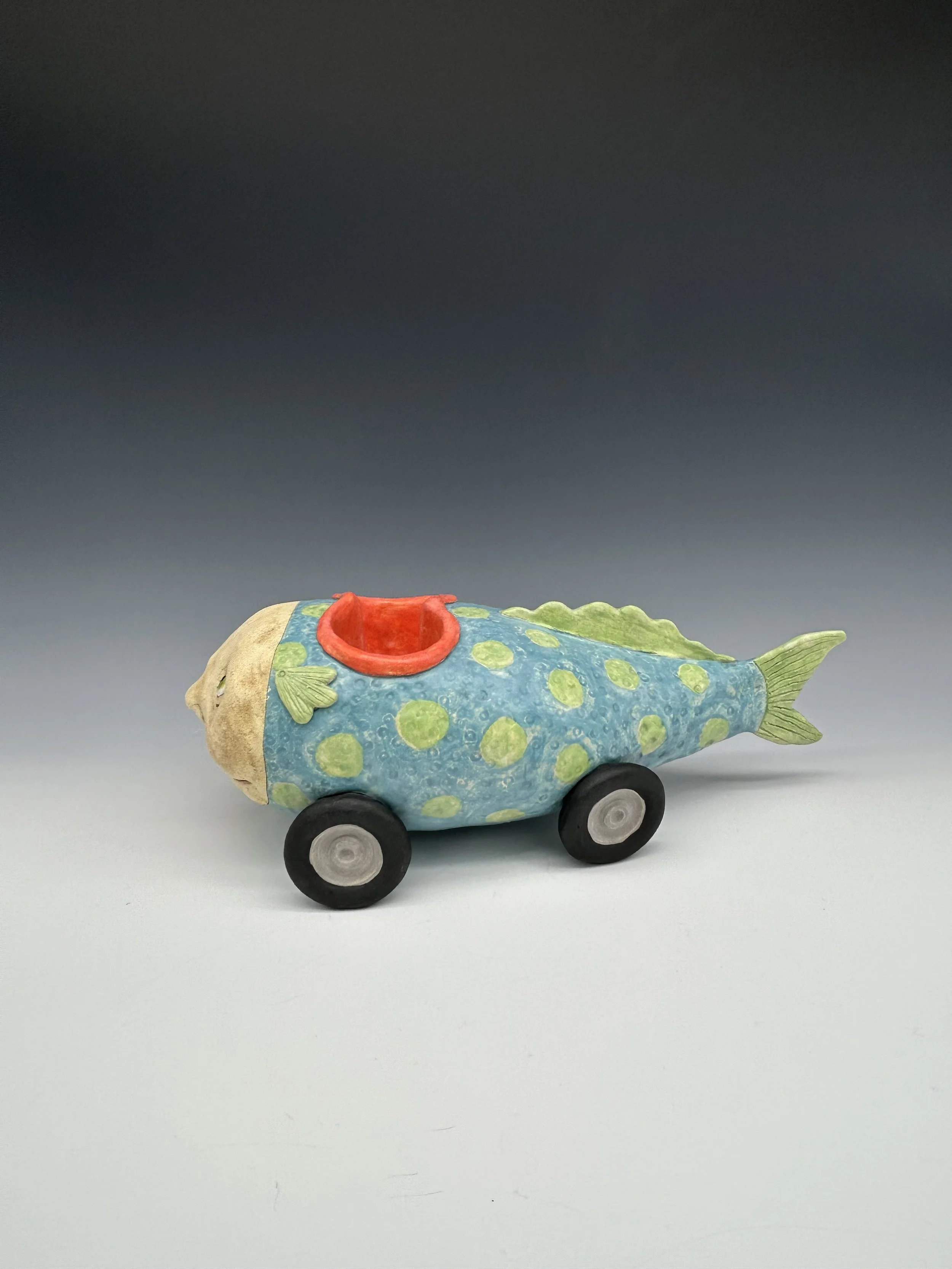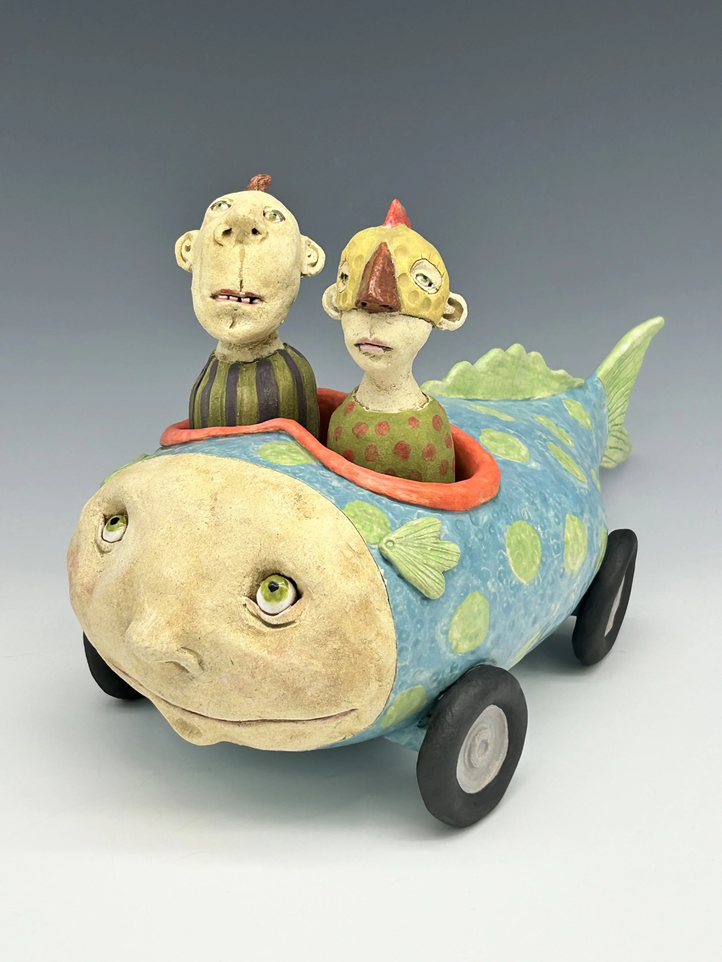 The thing between us $850.00 Blue Hedgehog $1,200.00 sugar-baby fish car $1,200.00 RAKU Fish-Car $1,500.00 Giant submarine $2,200.00 Nurse shark $1,500.00 Gag Grouper $2,400.00 Blue and Pink Flowered walk-around $1,200.00 I see things in black & white $850.00 Little explorer…big dreams $500.00 snow man $350.00 chilly vole $200.00 Sold out Clown bumper car $850.00 French Fry in a yellow and green sweater $500.00 Blue and orange fish on a stick $500.00 Pink and green flying French fry $650.00 Green submarine fishcar - 2 seater $1,100.00 Sold out Cat Fish Fishcar $1,000.00 Sold out Monster vessel $500.00 Bluefish Mermaid $1,500.00 He always loved the sea $2,400.00 Merman $1,500.00 Pink and purple flowered swimmer $1,200.00 Summertime 2025 $500.00 Sold out Purple monster - curiosity $500.00 Pink flowers on green $650.00 Blue skies vessel $650.00 Seen but not heard $1,800.00 Bubbles $500.00 Blue Fin $500.00 she wore rose colored glasses $2,400.00 Blue and yellow monster costume $2,000.00 when there's only one left $1,800.00 Big Blue Baby $1,200.00 Alone $1,200.00 Where do we go from here? $350.00 Sold out Black and white Angel Fish with passenger $850.00 Sold out Fish Car T-shirt $40.00