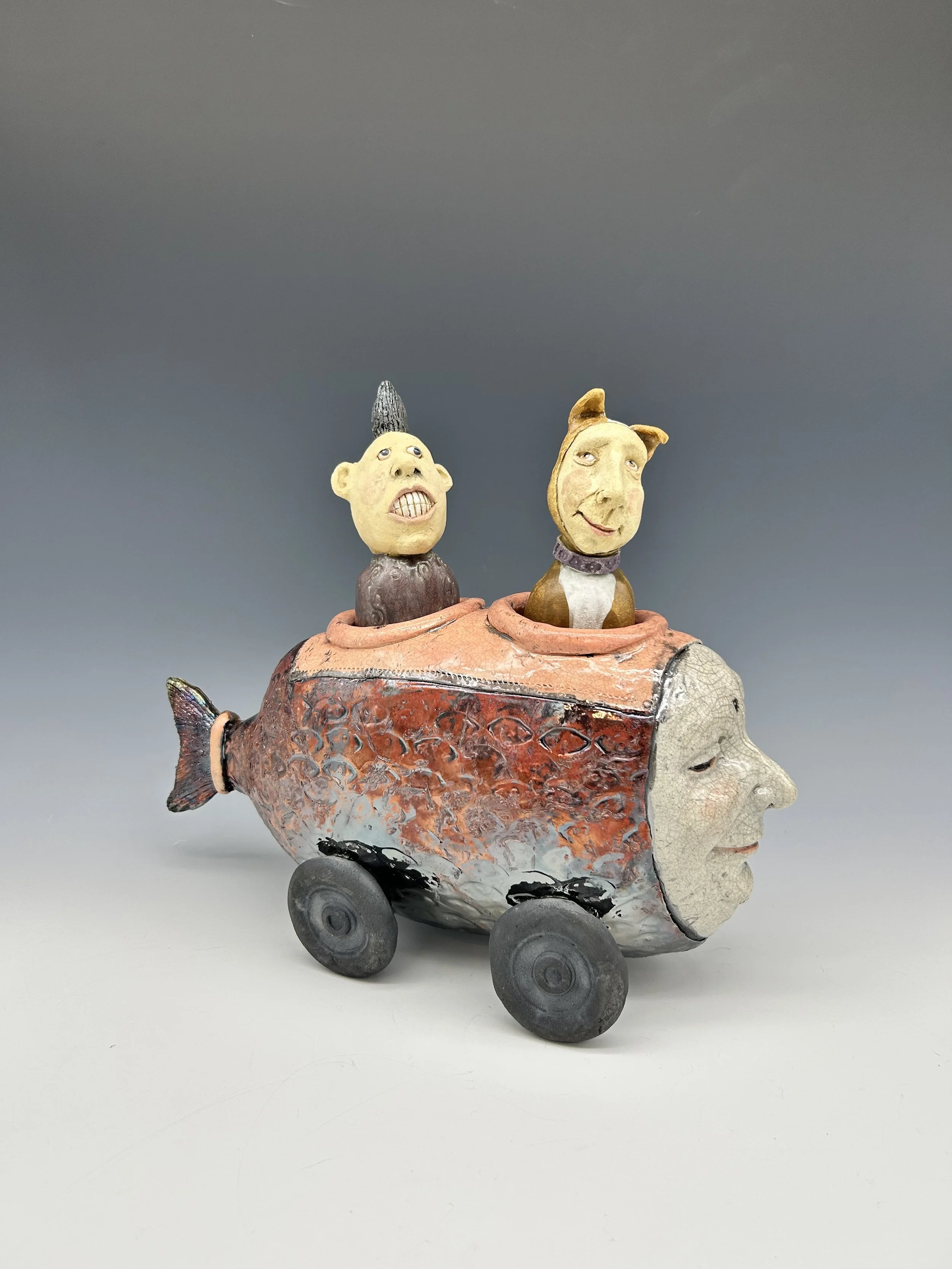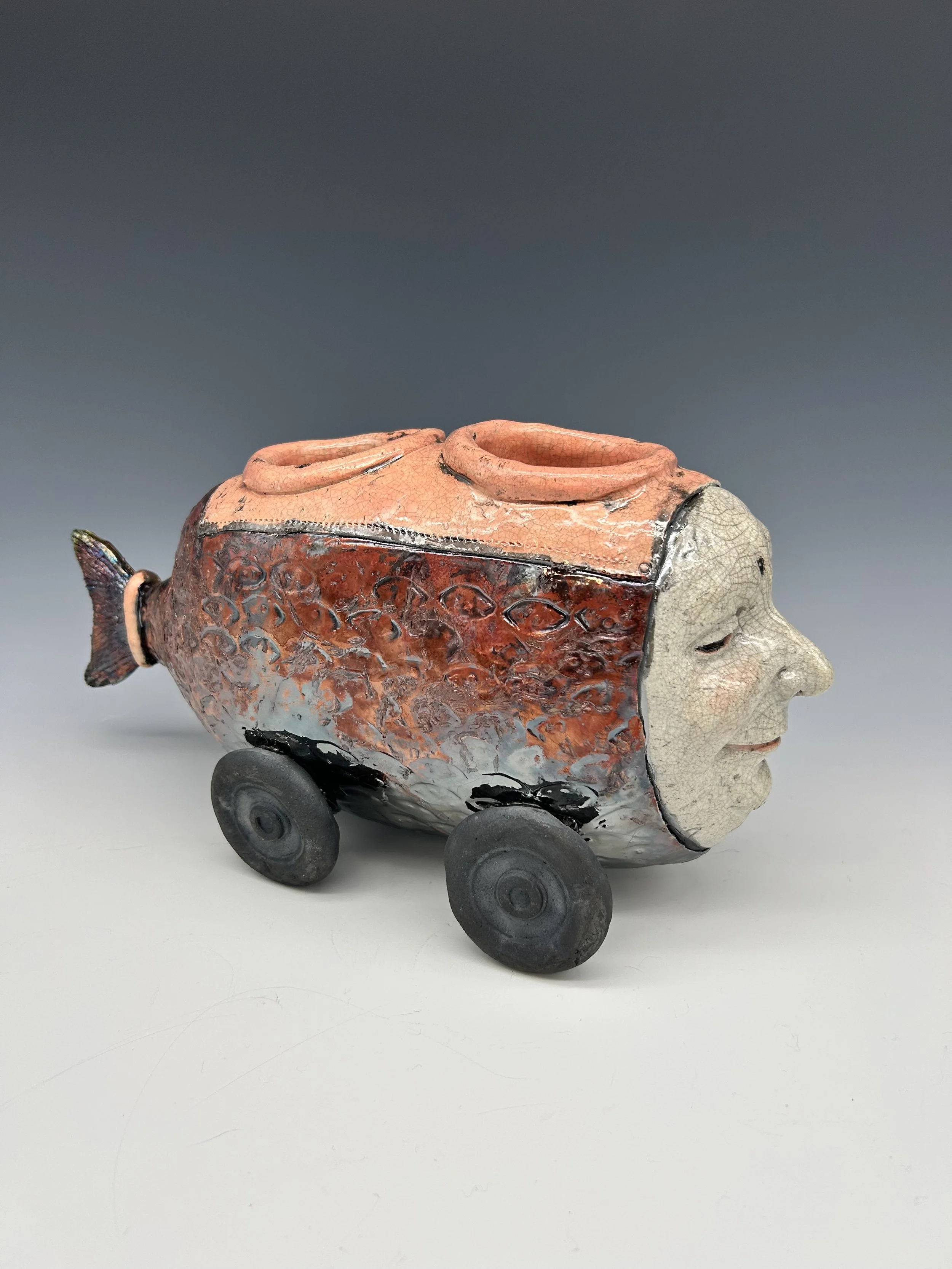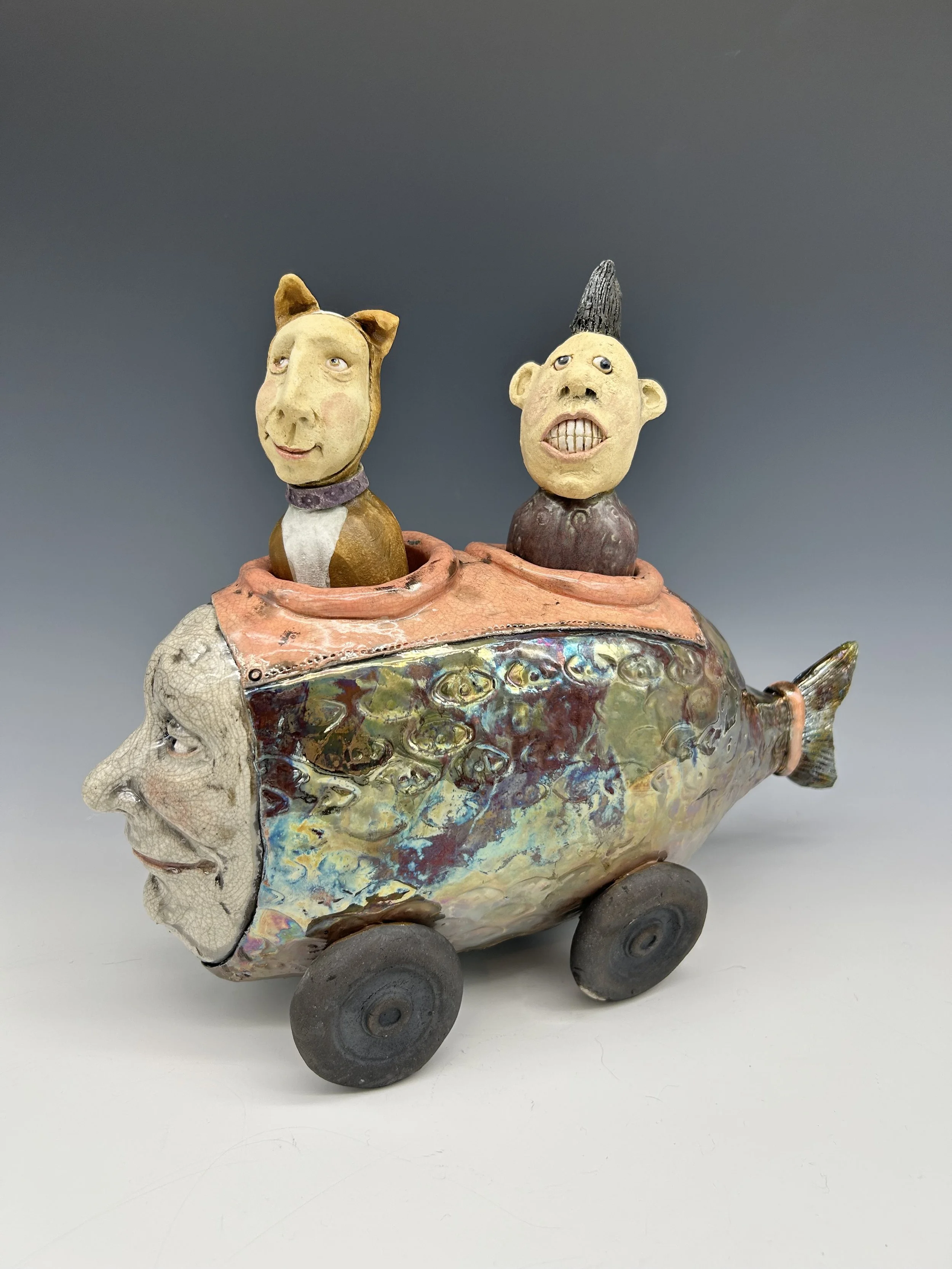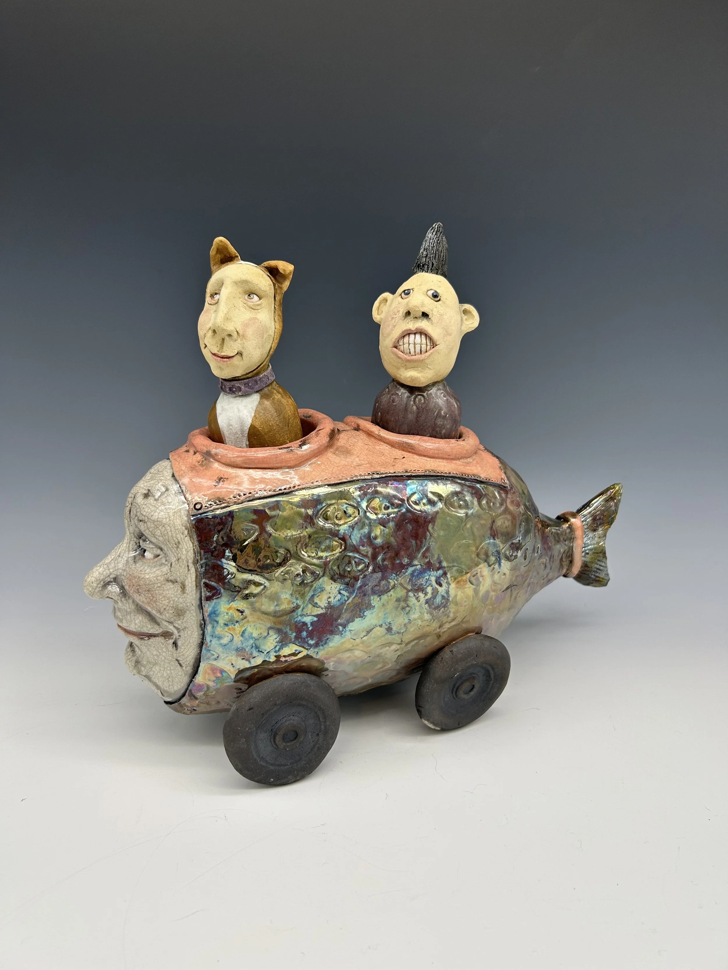 The thing between us $850.00 Blue Hedgehog $1,200.00 sugar-baby fish car $1,200.00 RAKU Fish-Car $1,500.00 Giant submarine $2,200.00 Nurse shark $1,500.00 Gag Grouper $2,400.00 Blue and Pink Flowered walk-around $1,200.00 I see things in black & white $850.00 Little explorer…big dreams $500.00 snow man $350.00 chilly vole $200.00 Sold out Clown bumper car $850.00 French Fry in a yellow and green sweater $500.00 Blue and orange fish on a stick $500.00 Pink and green flying French fry $650.00 Green submarine fishcar - 2 seater $1,100.00 Sold out Cat Fish Fishcar $1,000.00 Sold out Monster vessel $500.00 Bluefish Mermaid $1,500.00 He always loved the sea $2,400.00 Merman $1,500.00 Pink and purple flowered swimmer $1,200.00 Summertime 2025 $500.00 Sold out Purple monster - curiosity $500.00 Pink flowers on green $650.00 Blue skies vessel $650.00 Seen but not heard $1,800.00 Bubbles $500.00 Blue Fin $500.00 she wore rose colored glasses $2,400.00 Blue and yellow monster costume $2,000.00 when there's only one left $1,800.00 Big Blue Baby $1,200.00 Alone $1,200.00 Where do we go from here? $350.00 Sold out Black and white Angel Fish with passenger $850.00 Sold out Fish Car T-shirt $40.00