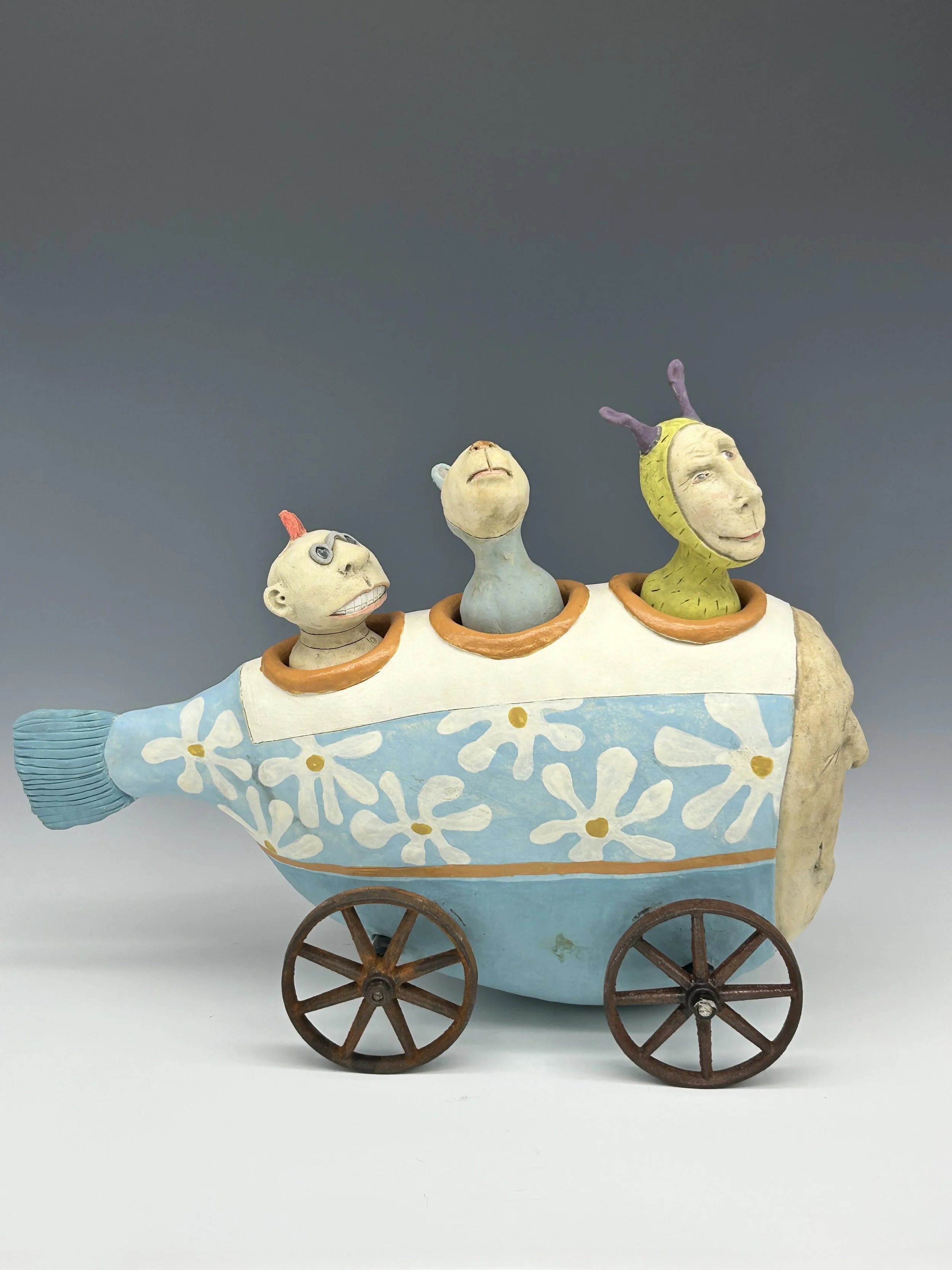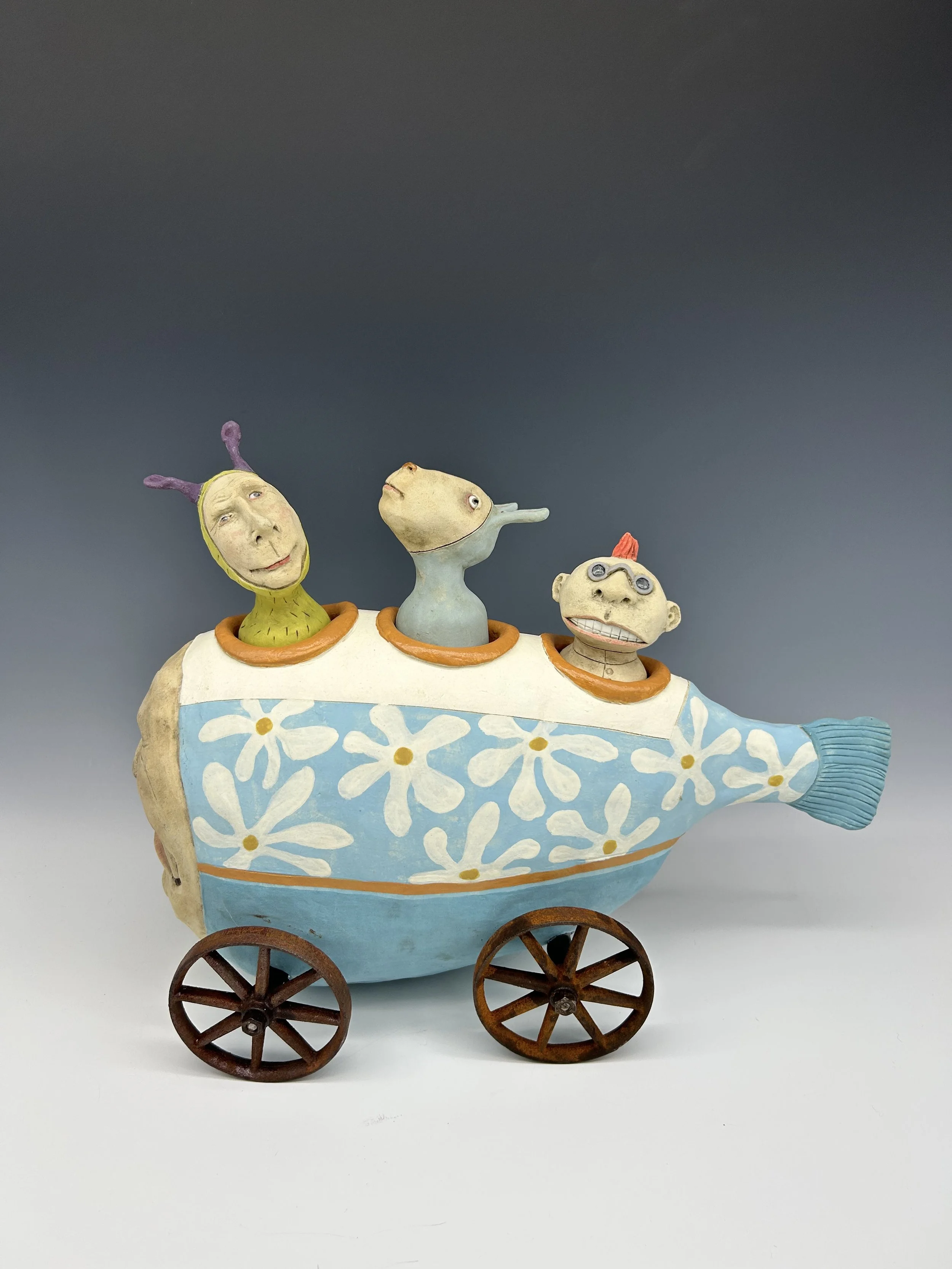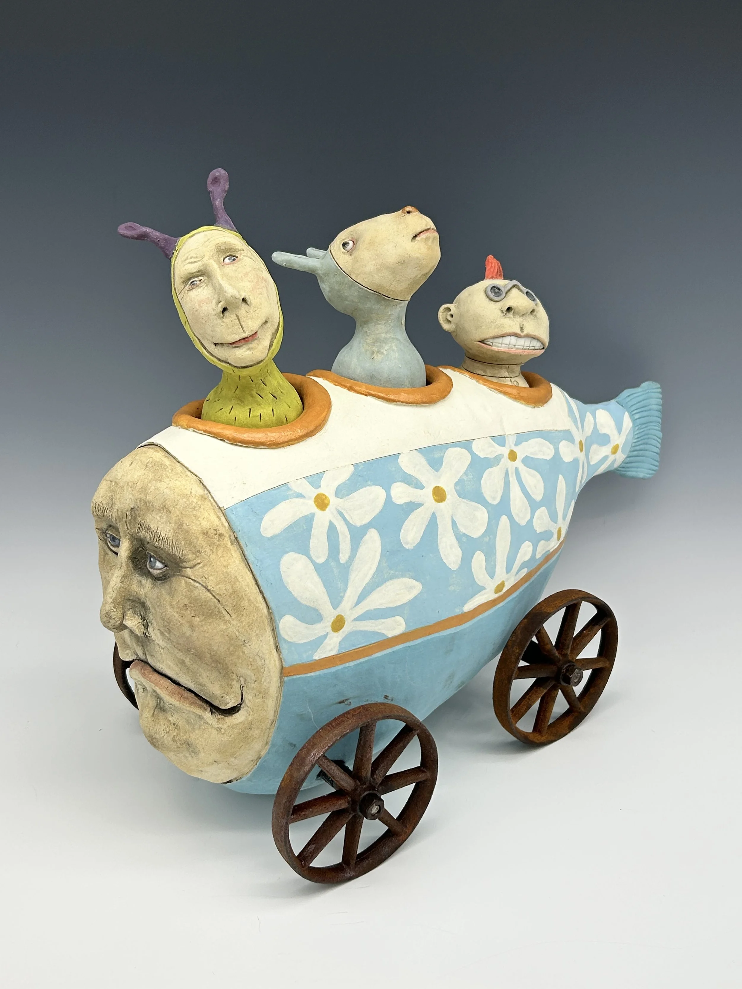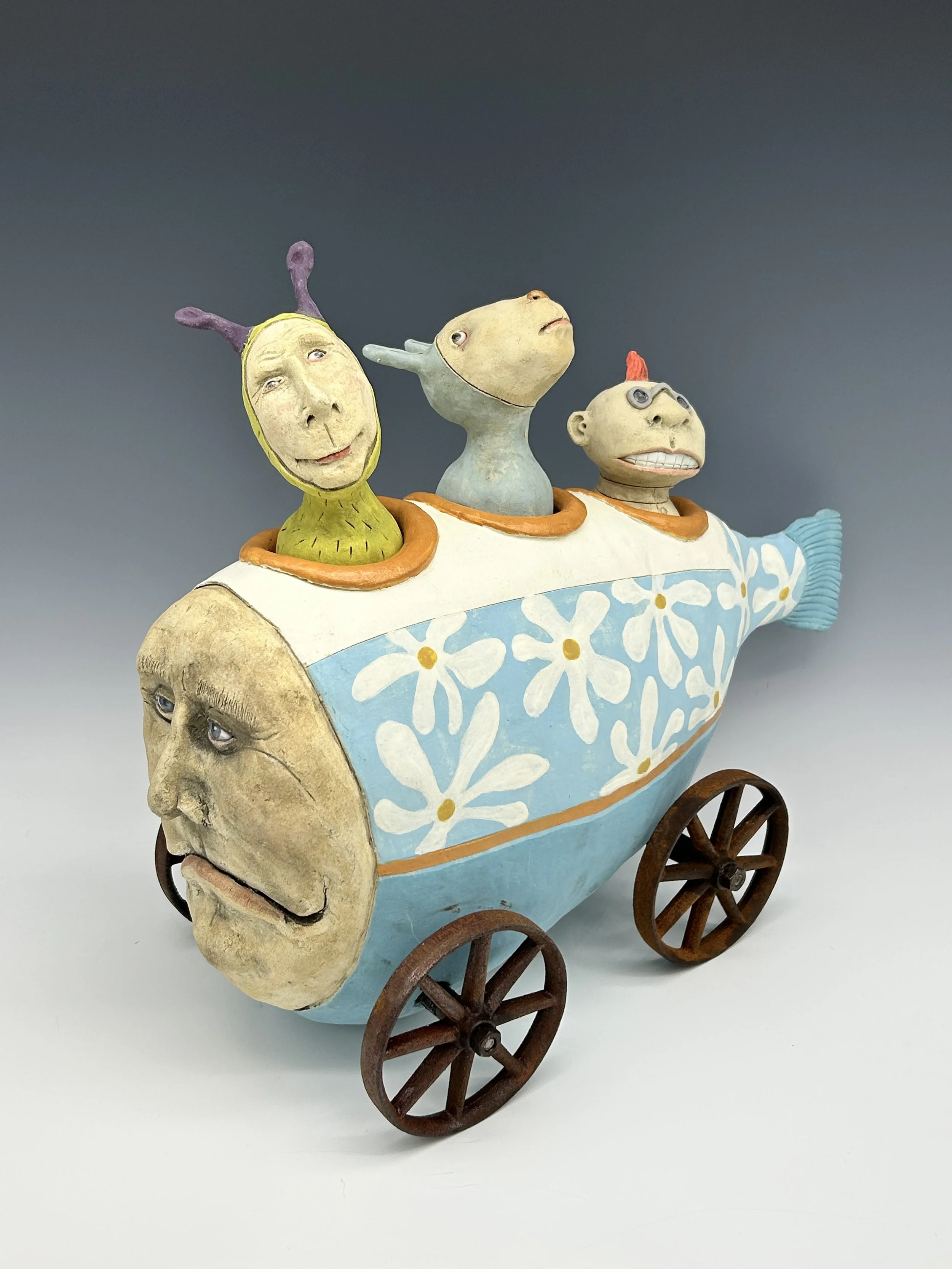 Cat Fish Fishcar $1,000.00 Gag Grouper $2,400.00 Giant submarine $2,200.00 The Classic Fishcar $1,500.00 Green Monster $200.00 Mouse with a tie $200.00 Chartreuse Devil $200.00 Pink Bunny $200.00 Sold out Bluefish Mermaid $1,500.00 He always loved the sea $2,400.00 Flowered yellow cap swimmer $1,500.00 Green flower capped swimmer $1,800.00 Mermaid $1,800.00 Merman $1,500.00 Fish out of water (lidded vessel) $650.00 Pink and purple flowered swimmer $1,200.00 Summertime 2025 $500.00 4th of July (swimmer) $500.00 blue bather (or: why the long face?) $650.00 Yellow flower mask $650.00 Purple monster - curiosity $500.00 Jail bird $500.00 Pink flowers on green $650.00 Blue skies vessel $650.00 Seen but not heard $1,800.00 Bubbles $500.00 Chicken Lady $500.00 Blue Fin $500.00 she wore rose colored glasses $2,400.00 Partly cloudy $1,200.00 woke this morning still feeling a little sluggish $650.00 Blue and yellow monster costume $2,000.00 when there's only one left $1,800.00 Big Blue Baby $1,200.00 Alone $1,200.00 Where do we go from here? $350.00 Blue Bunny - curiosity $500.00 Blue bunny $1,200.00