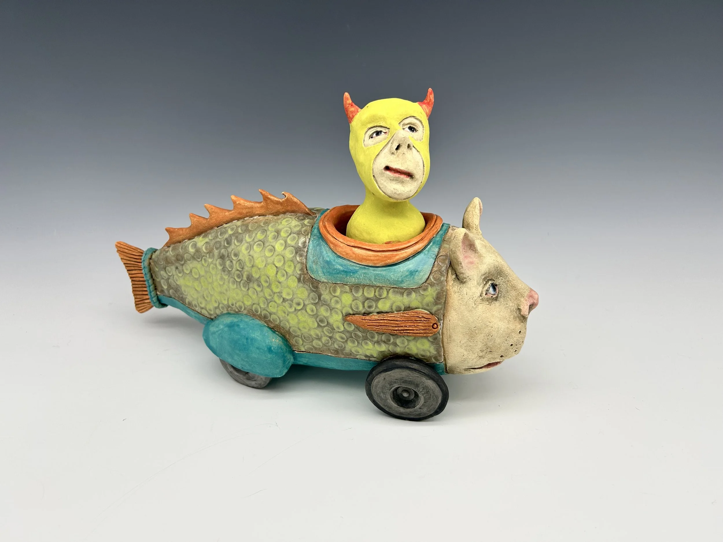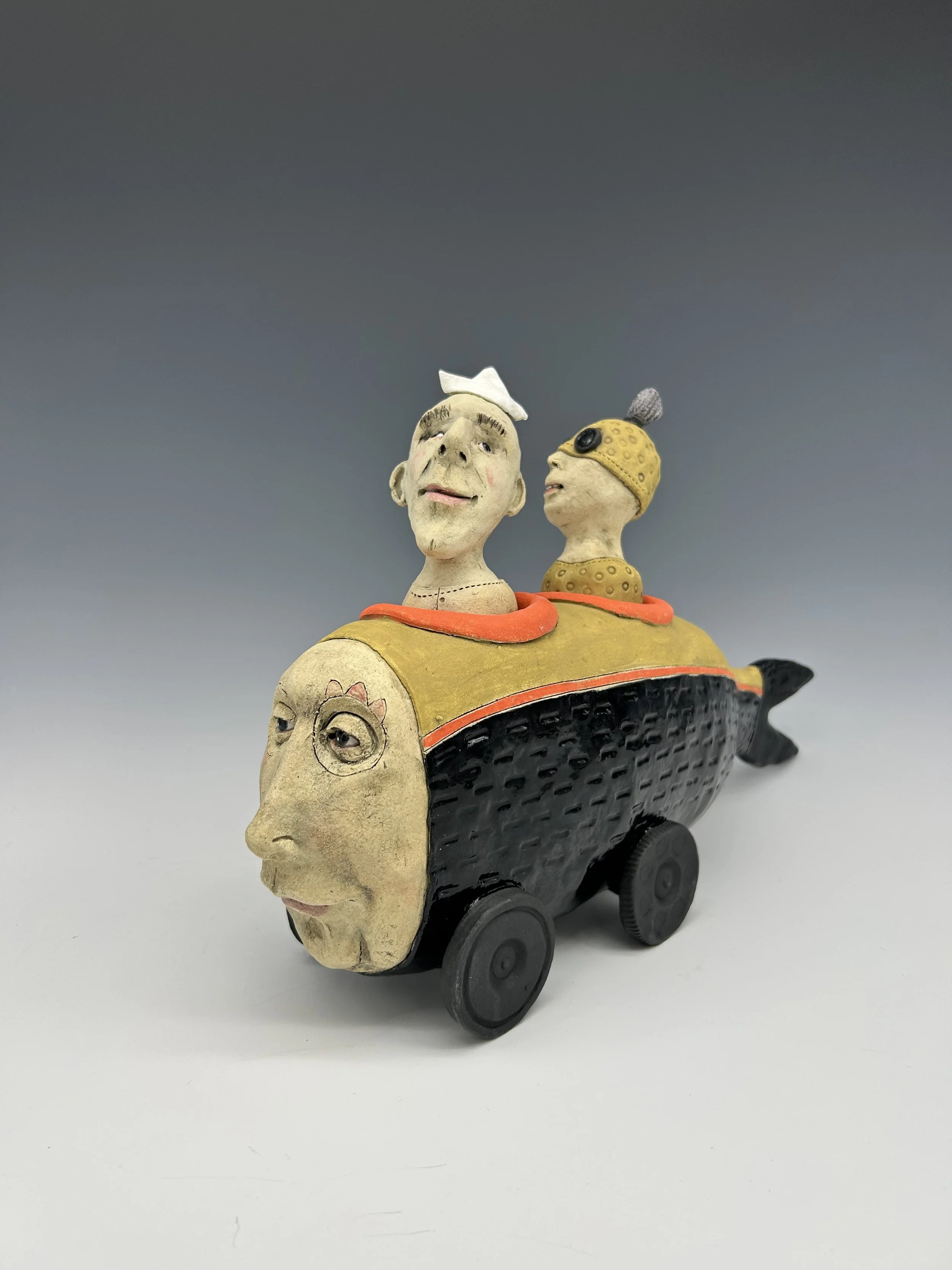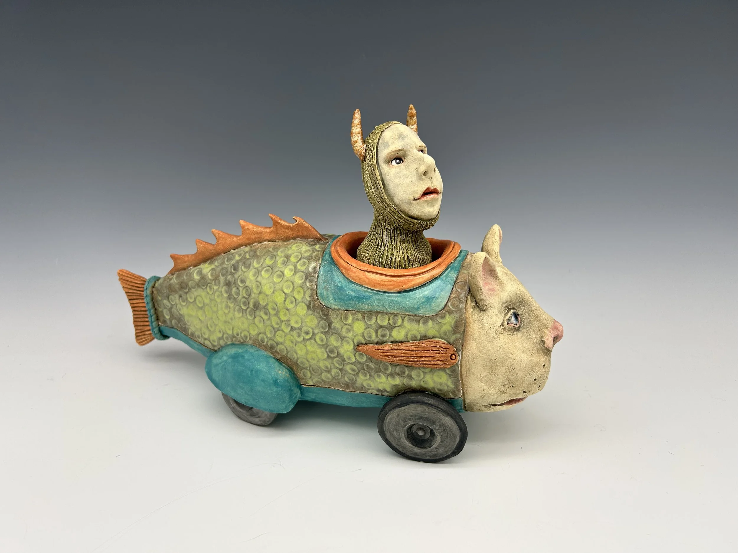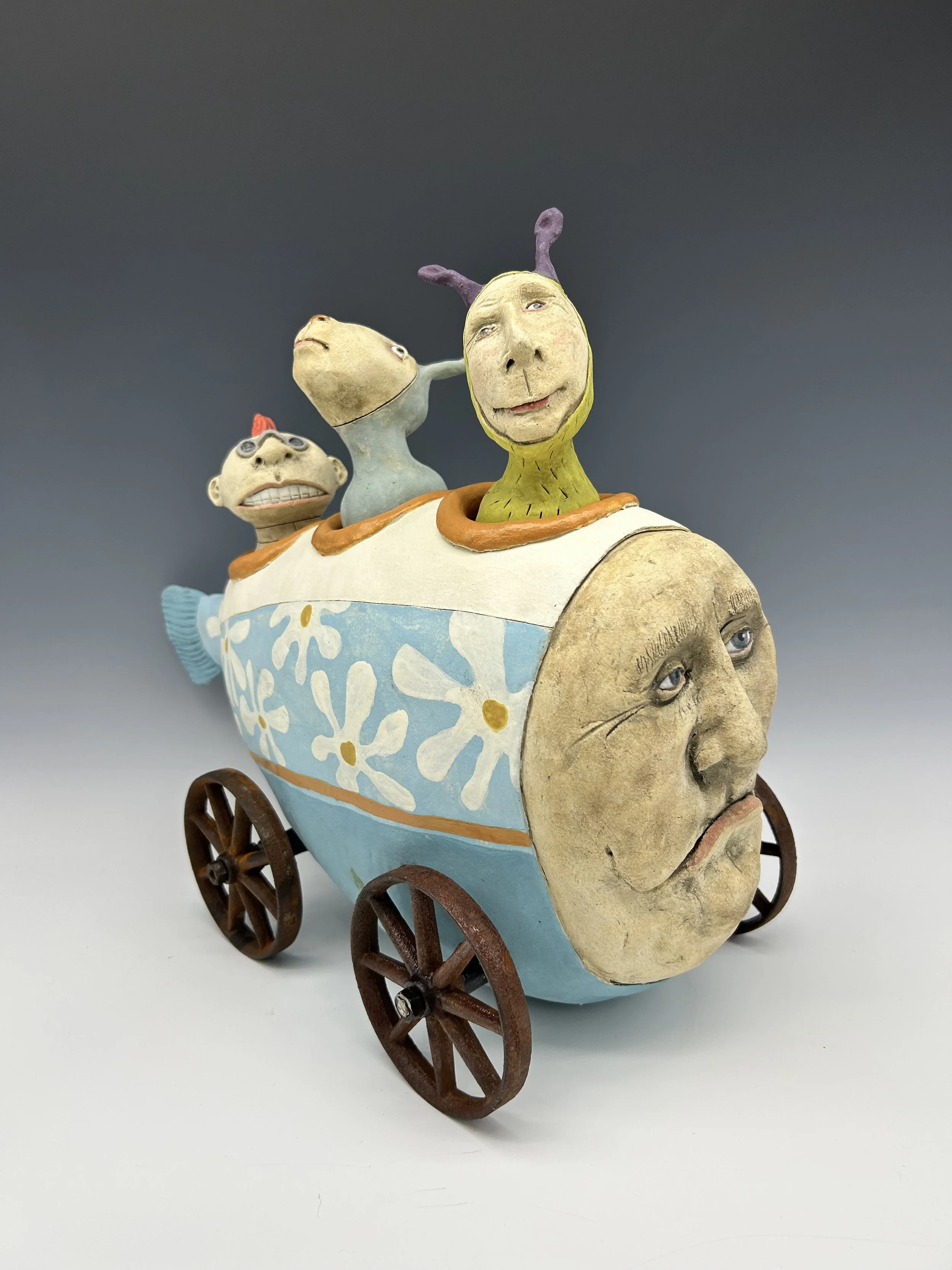 Cat Fish Fishcar $1,000.00 Gag Grouper $2,400.00 Giant submarine $2,200.00 The Classic Fishcar $1,500.00 Green Monster $200.00 Mouse with a tie $200.00 Chartreuse Devil $200.00 Pink Bunny $200.00 Sold out Bluefish Mermaid $1,500.00 He always loved the sea $2,400.00 Flowered yellow cap swimmer $1,500.00 Green flower capped swimmer $1,800.00 Mermaid $1,800.00 Merman $1,500.00 Fish out of water (lidded vessel) $650.00 Pink and purple flowered swimmer $1,200.00 Summertime 2025 $500.00 4th of July (swimmer) $500.00 blue bather (or: why the long face?) $650.00 Yellow flower mask $650.00 Purple monster - curiosity $500.00 Jail bird $500.00 Pink flowers on green $650.00 Blue skies vessel $650.00 Seen but not heard $1,800.00 Bubbles $500.00 Chicken Lady $500.00 Blue Fin $500.00 she wore rose colored glasses $2,400.00 Partly cloudy $1,200.00 woke this morning still feeling a little sluggish $650.00 Blue and yellow monster costume $2,000.00 when there's only one left $1,800.00 Big Blue Baby $1,200.00 Alone $1,200.00 Where do we go from here? $350.00 Blue Bunny - curiosity $500.00 Blue bunny $1,200.00