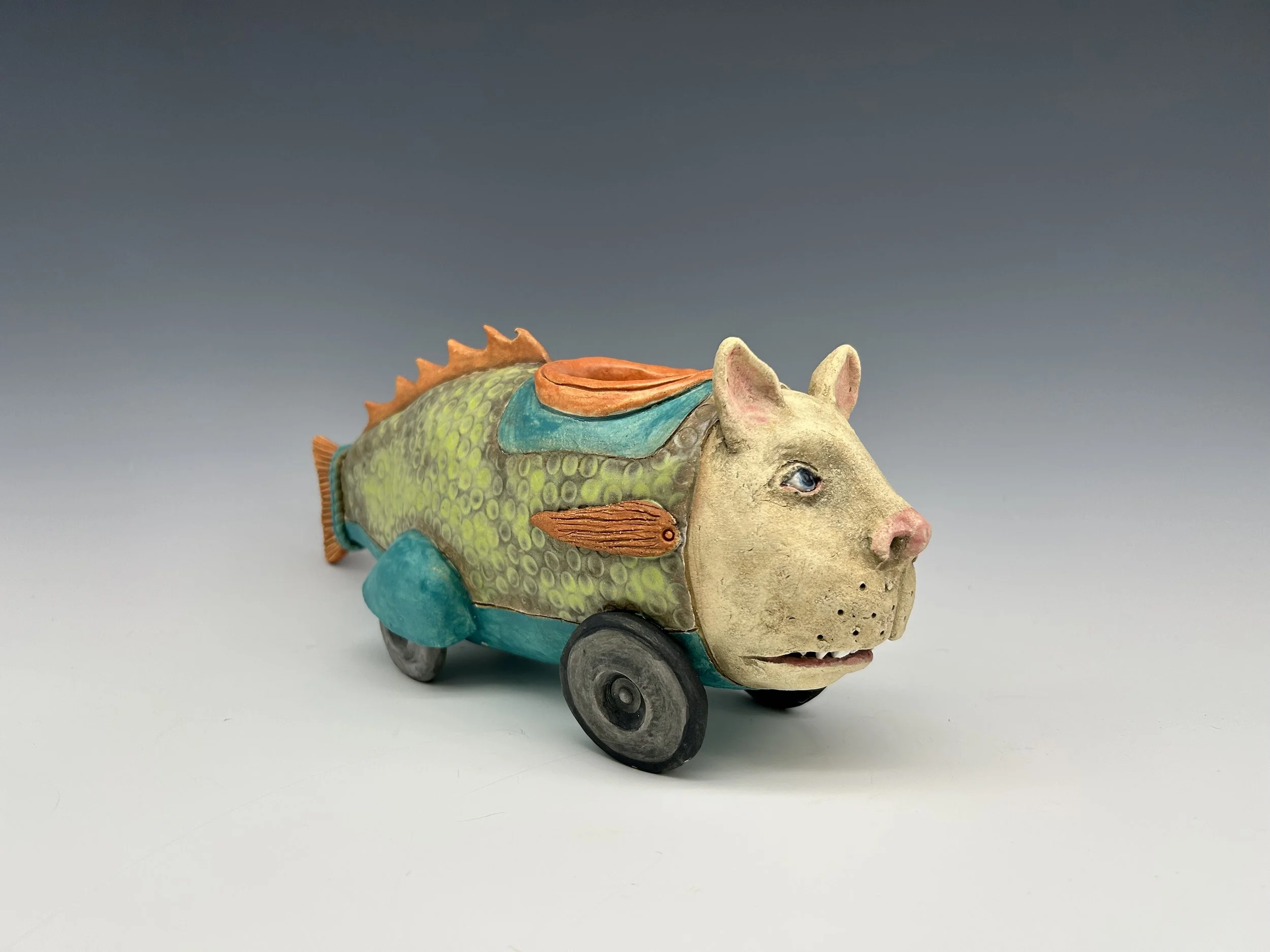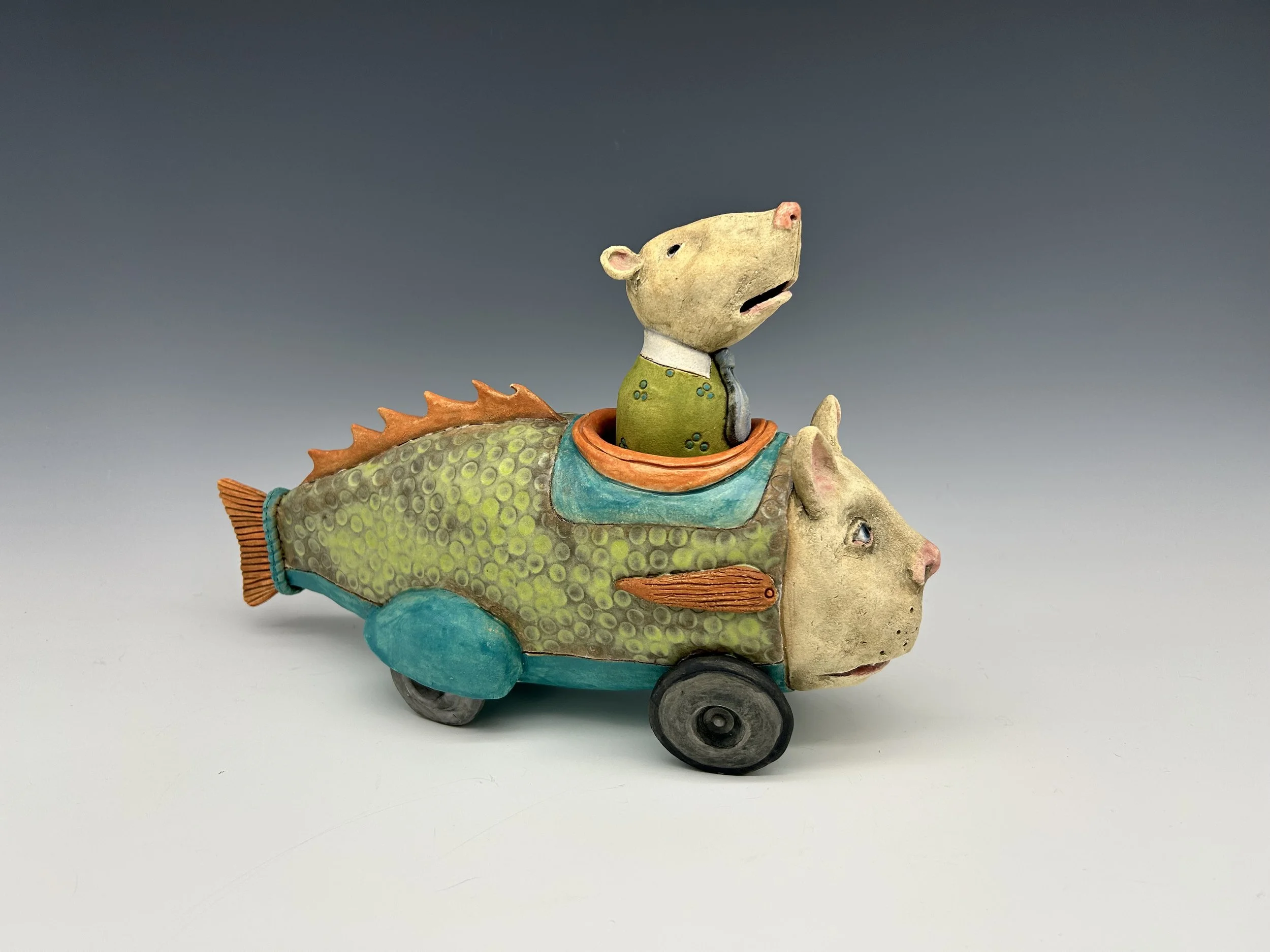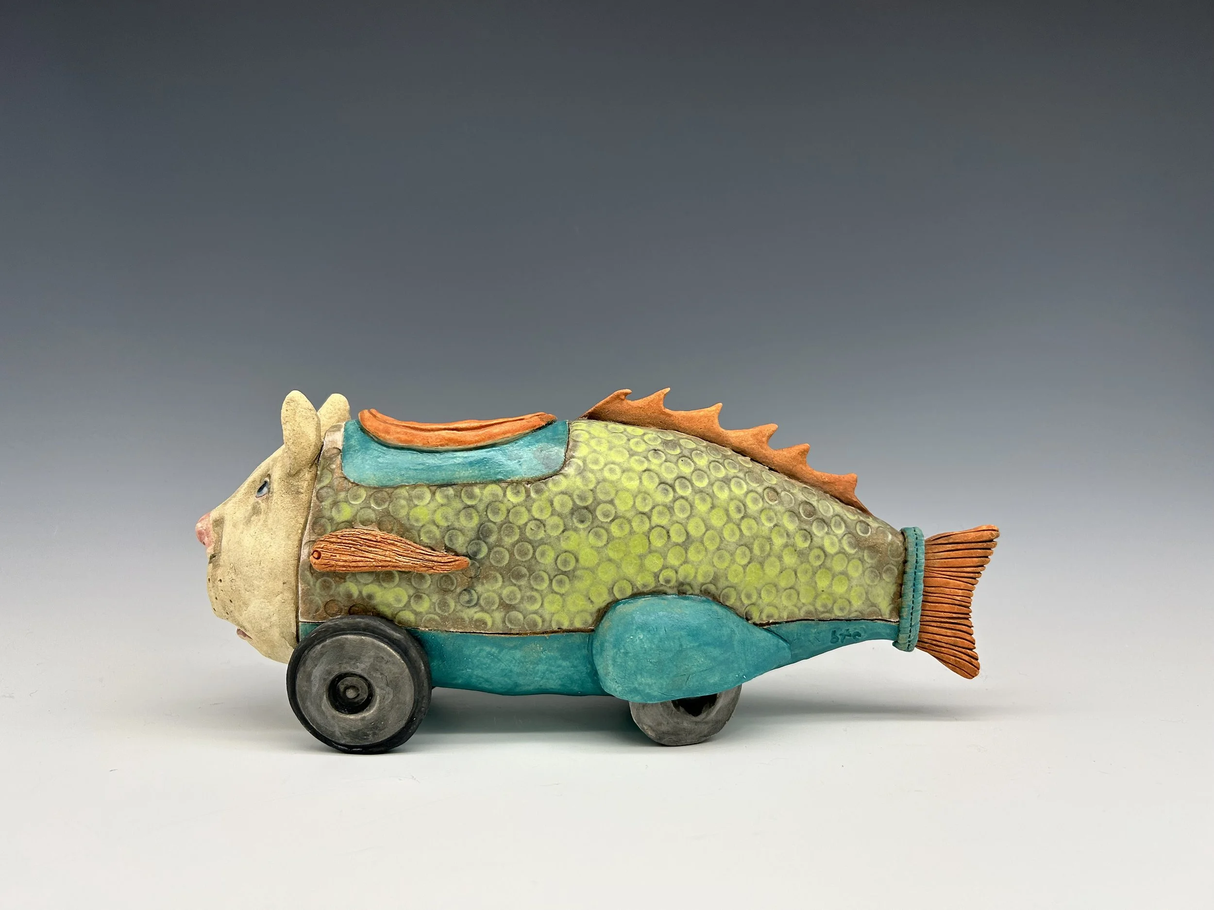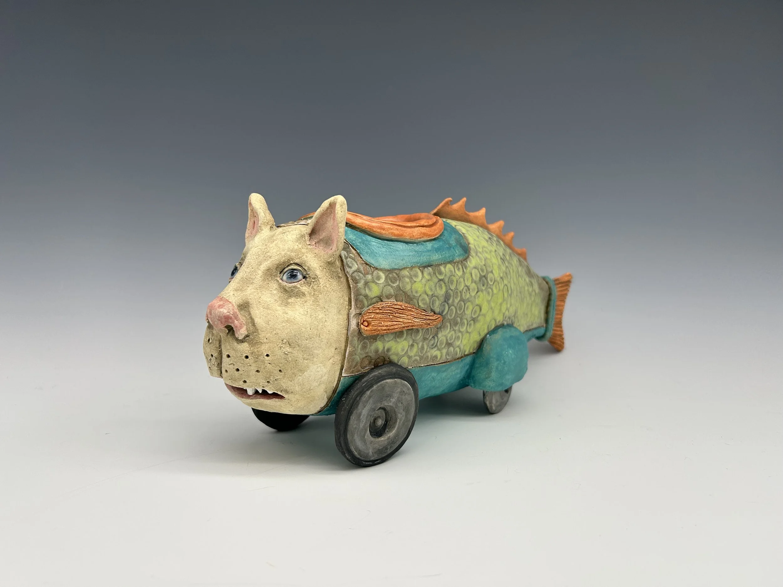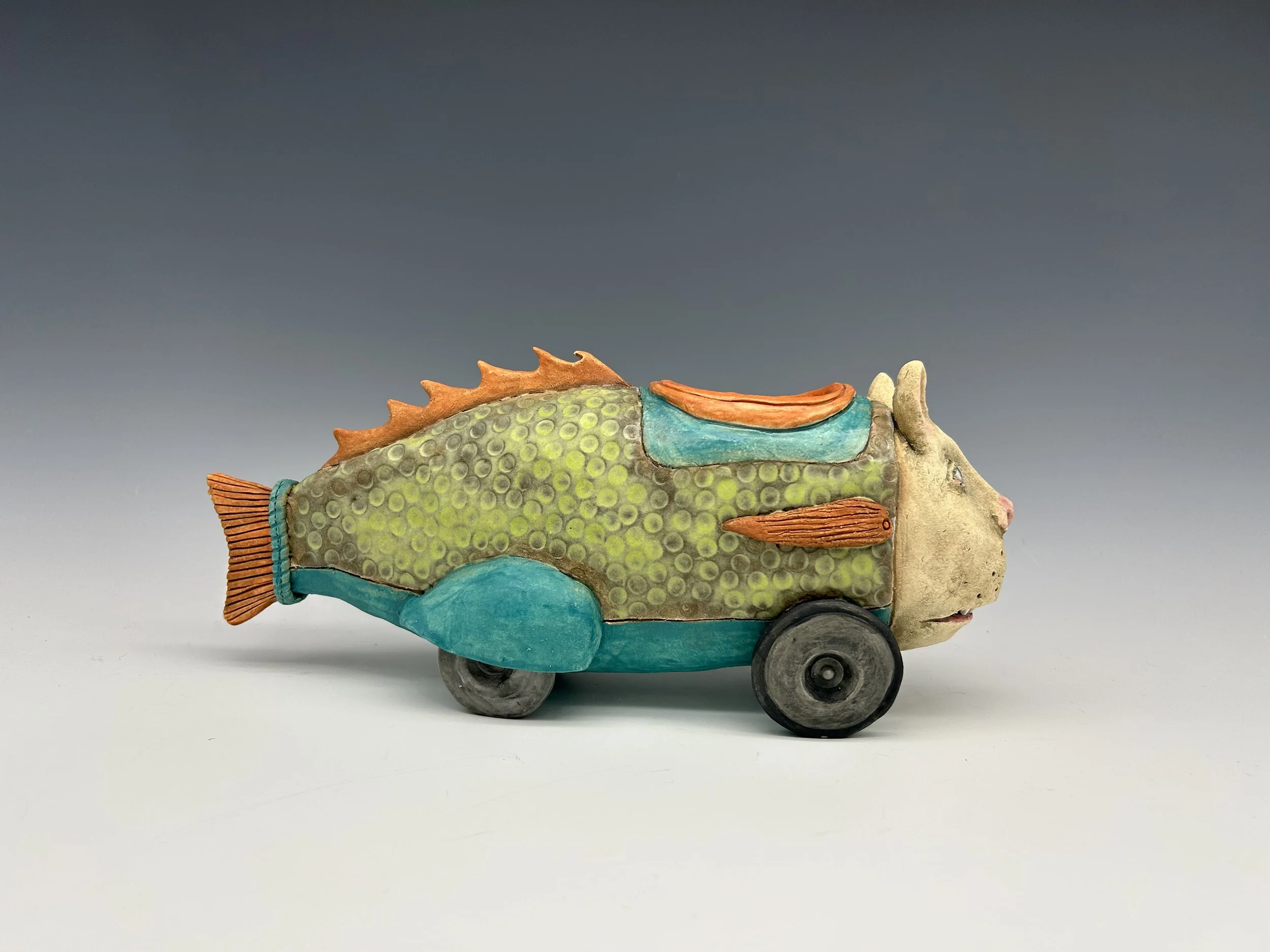 Cat Fish Fishcar $1,000.00 Gag Grouper $2,400.00 Giant submarine $2,200.00 The Classic Fishcar $1,500.00 Green Monster $200.00 Mouse with a tie $200.00 Chartreuse Devil $200.00 Pink Bunny $200.00 Sold out Bluefish Mermaid $1,500.00 He always loved the sea $2,400.00 Flowered yellow cap swimmer $1,500.00 Green flower capped swimmer $1,800.00 Mermaid $1,800.00 Merman $1,500.00 Fish out of water (lidded vessel) $650.00 Pink and purple flowered swimmer $1,200.00 Summertime 2025 $500.00 4th of July (swimmer) $500.00 blue bather (or: why the long face?) $650.00 Yellow flower mask $650.00 Purple monster - curiosity $500.00 Jail bird $500.00 Pink flowers on green $650.00 Blue skies vessel $650.00 Seen but not heard $1,800.00 Bubbles $500.00 Chicken Lady $500.00 Blue Fin $500.00 she wore rose colored glasses $2,400.00 Partly cloudy $1,200.00 woke this morning still feeling a little sluggish $650.00 Blue and yellow monster costume $2,000.00 when there's only one left $1,800.00 Big Blue Baby $1,200.00 Alone $1,200.00 Where do we go from here? $350.00 Blue Bunny - curiosity $500.00 Blue bunny $1,200.00