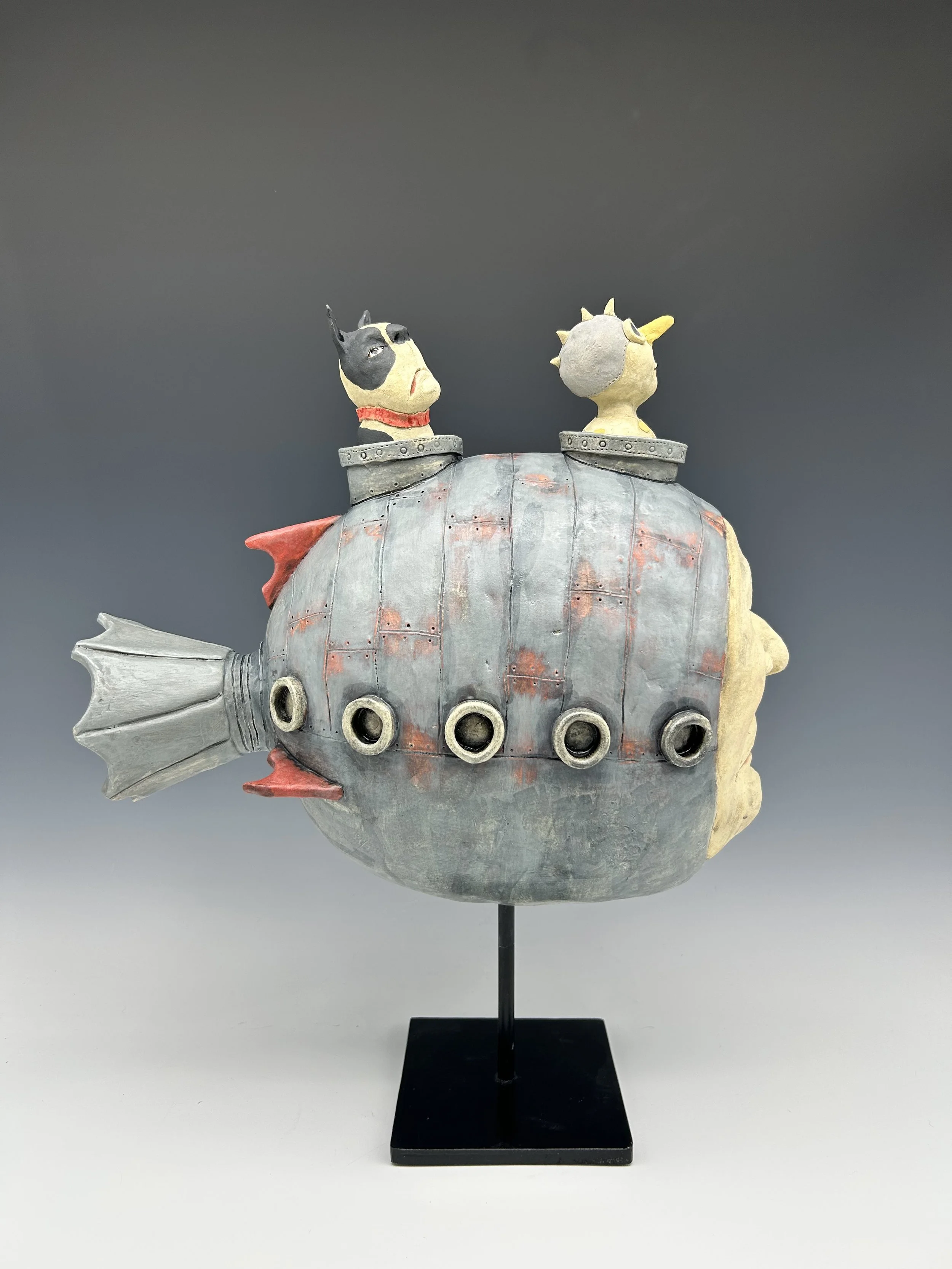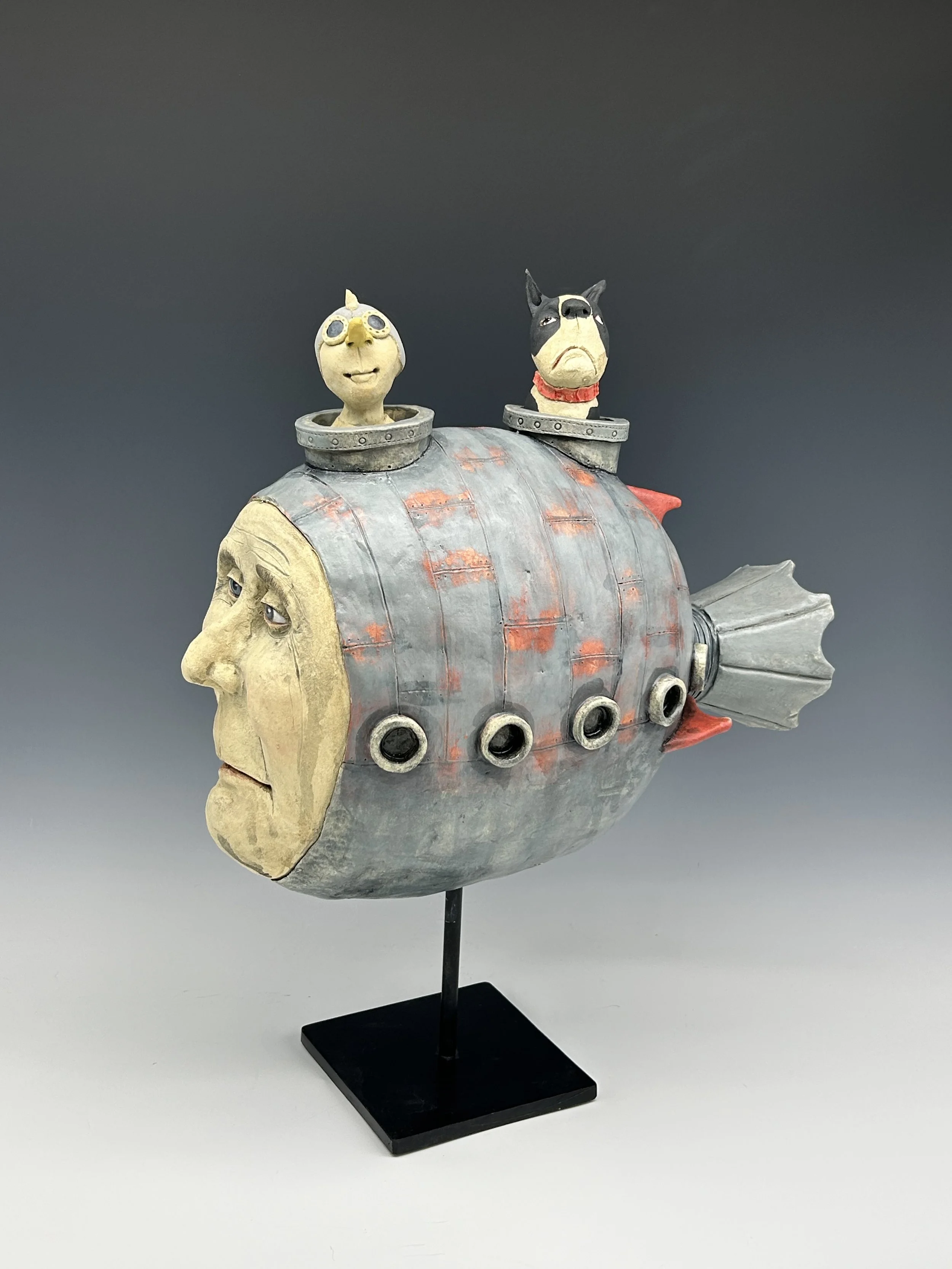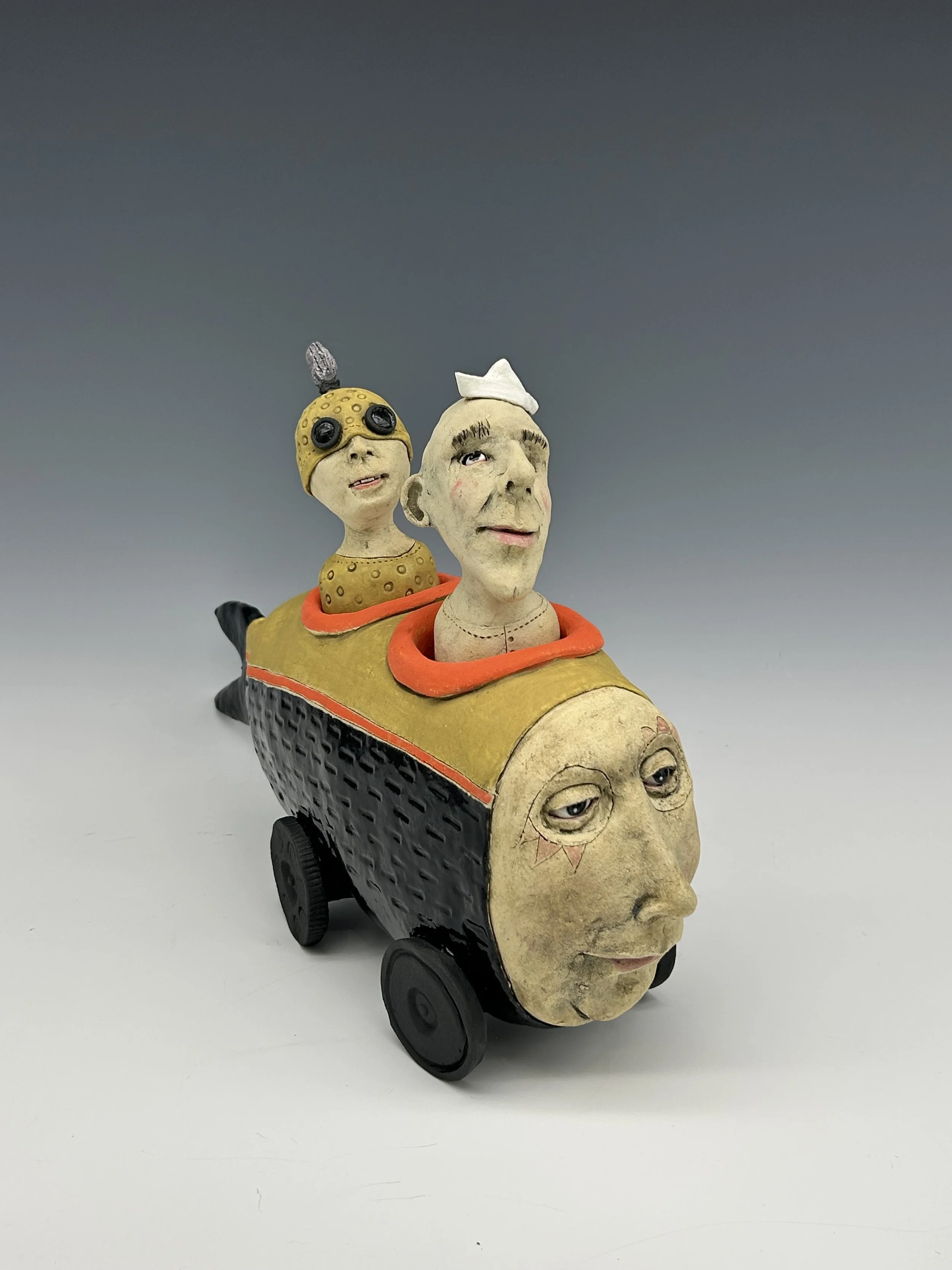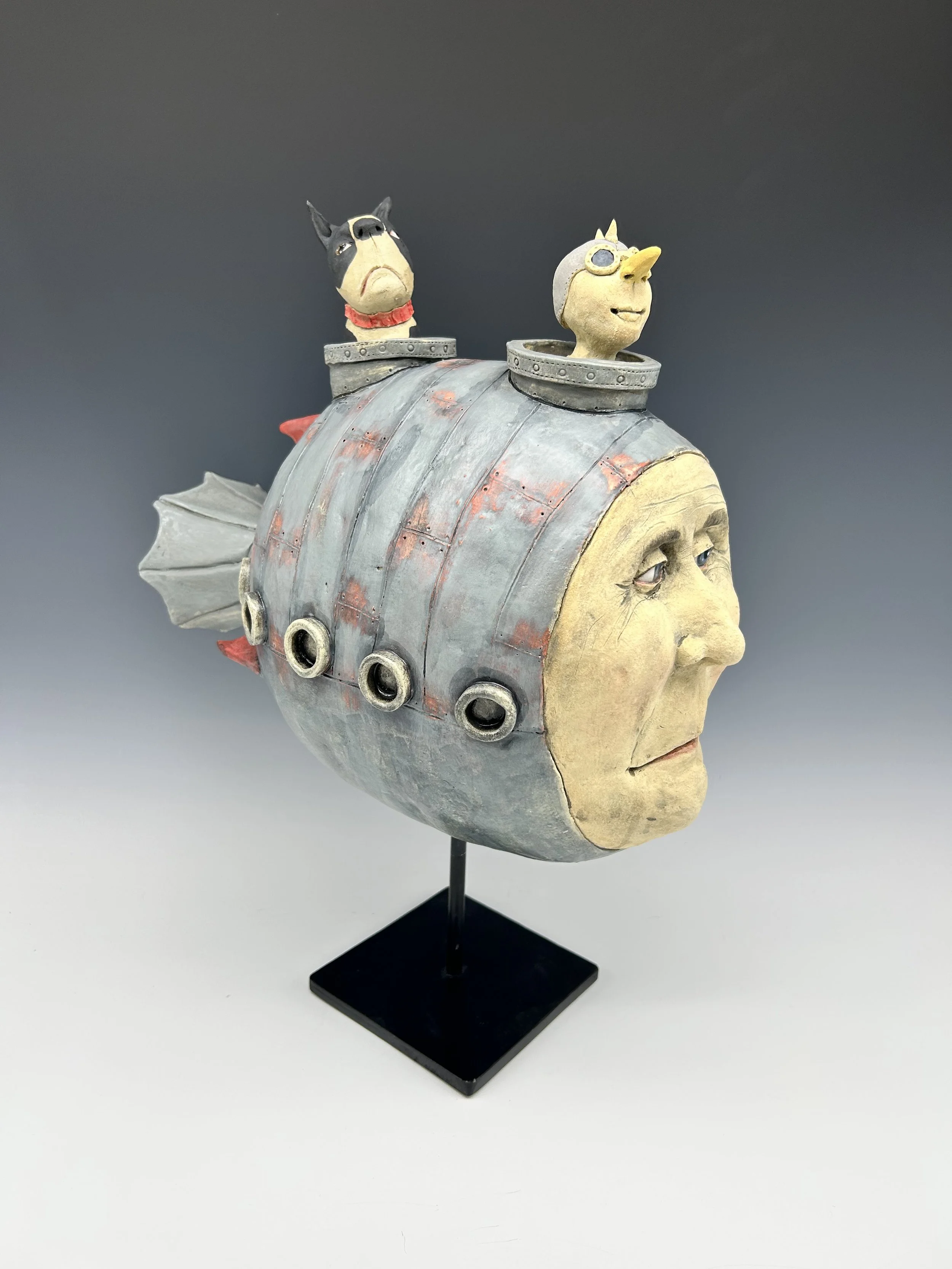 Cat Fish Fishcar $1,000.00 Gag Grouper $2,400.00 Giant submarine $2,200.00 The Classic Fishcar $1,500.00 Green Monster $200.00 Mouse with a tie $200.00 Chartreuse Devil $200.00 Pink Bunny $200.00 Sold out Bluefish Mermaid $1,500.00 He always loved the sea $2,400.00 Flowered yellow cap swimmer $1,500.00 Green flower capped swimmer $1,800.00 Mermaid $1,800.00 Merman $1,500.00 Fish out of water (lidded vessel) $650.00 Pink and purple flowered swimmer $1,200.00 Summertime 2025 $500.00 4th of July (swimmer) $500.00 blue bather (or: why the long face?) $650.00 Yellow flower mask $650.00 Purple monster - curiosity $500.00 Jail bird $500.00 Pink flowers on green $650.00 Blue skies vessel $650.00 Seen but not heard $1,800.00 Bubbles $500.00 Chicken Lady $500.00 Blue Fin $500.00 she wore rose colored glasses $2,400.00 Partly cloudy $1,200.00 woke this morning still feeling a little sluggish $650.00 Blue and yellow monster costume $2,000.00 when there's only one left $1,800.00 Big Blue Baby $1,200.00 Alone $1,200.00 Where do we go from here? $350.00 Blue Bunny - curiosity $500.00 Blue bunny $1,200.00