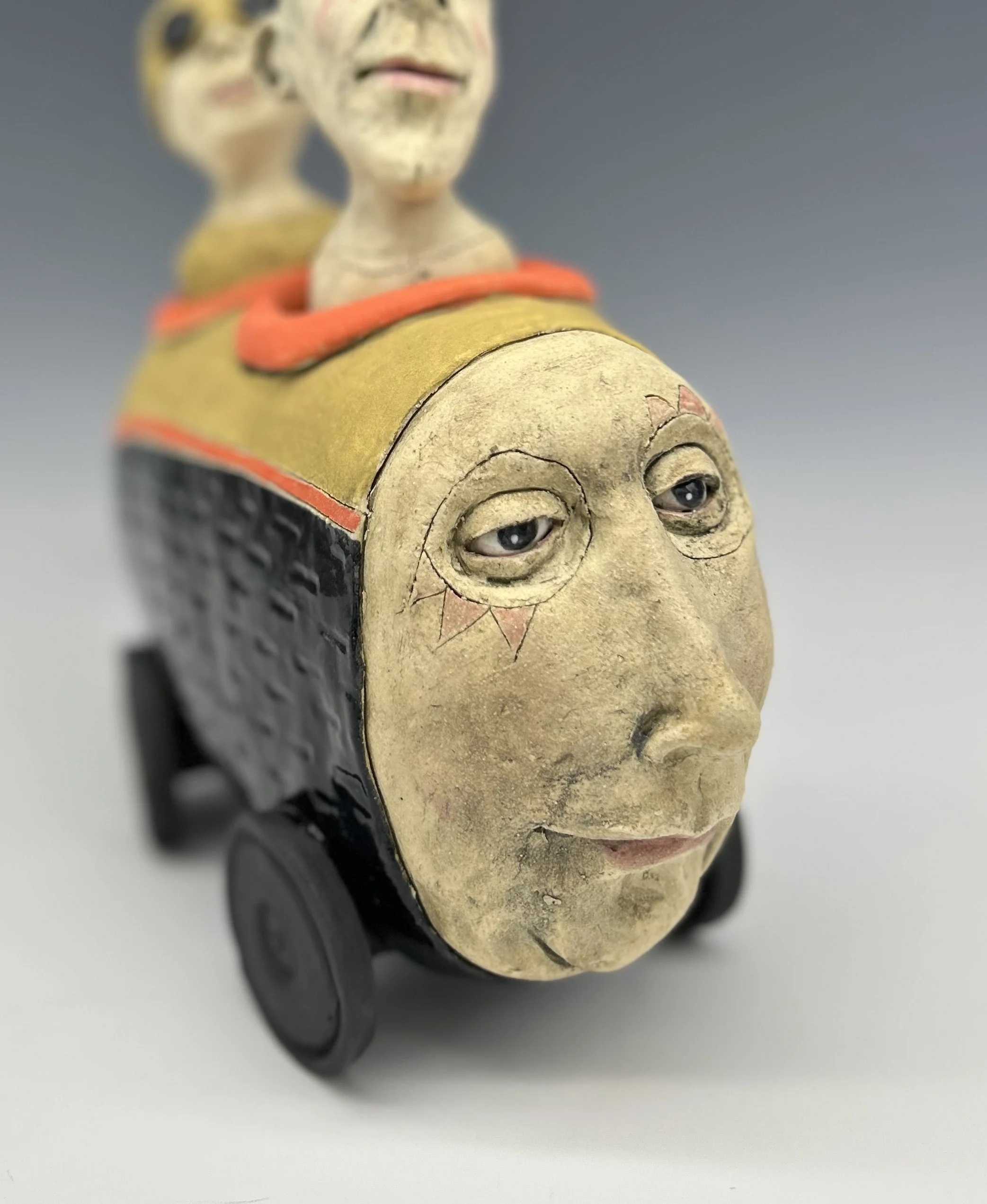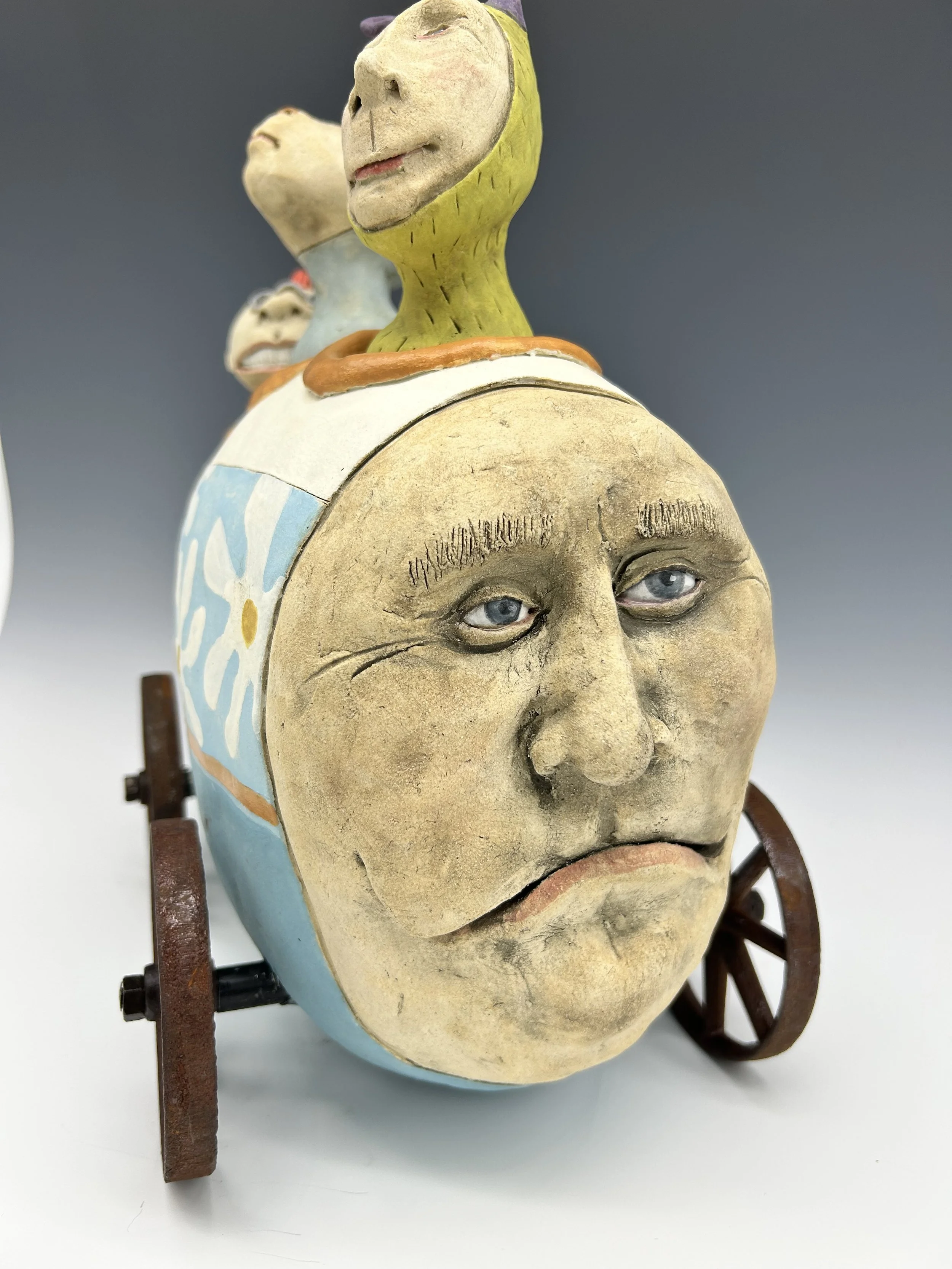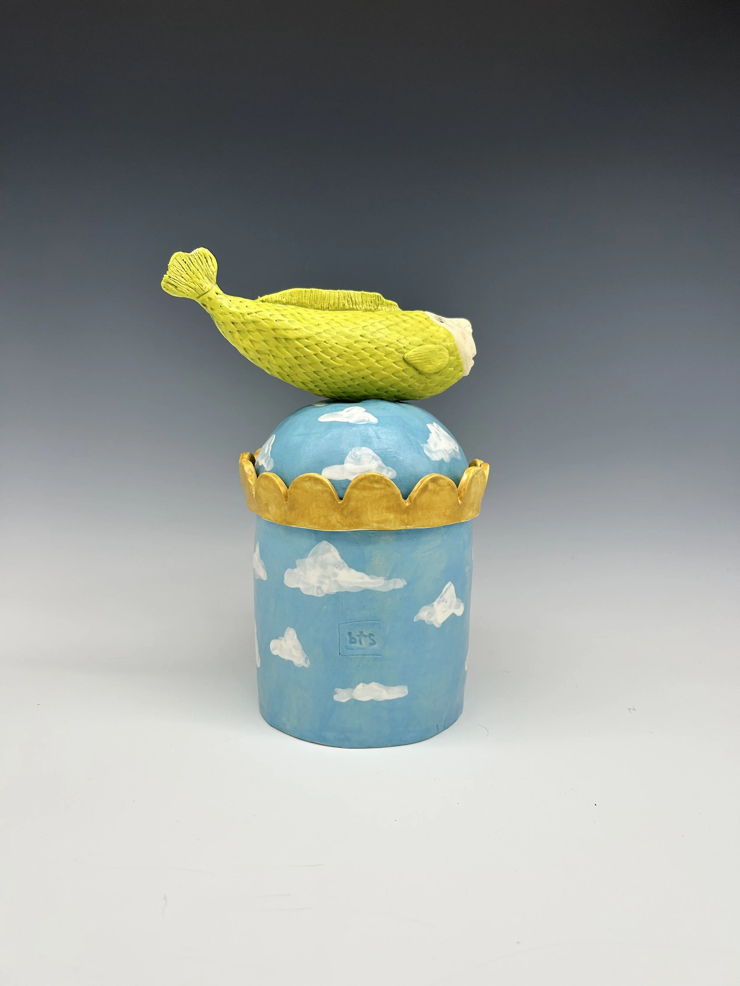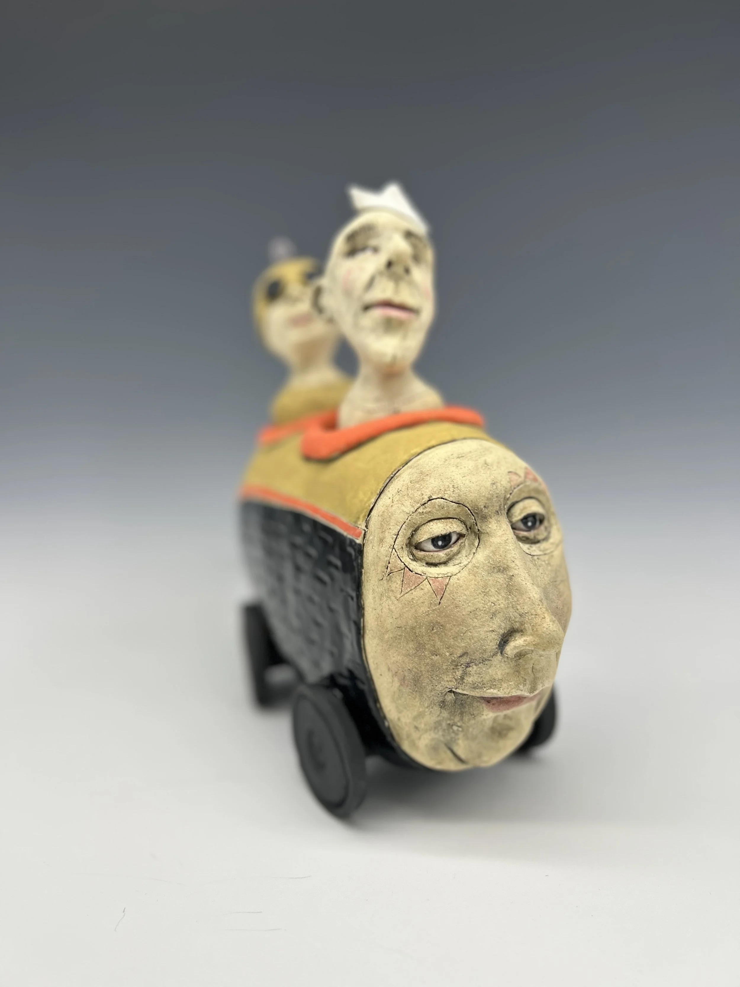 Cat Fish Fishcar $1,000.00 Gag Grouper $2,400.00 Giant submarine $2,200.00 The Classic Fishcar $1,500.00 Green Monster $200.00 Mouse with a tie $200.00 Chartreuse Devil $200.00 Pink Bunny $200.00 Sold out Bluefish Mermaid $1,500.00 He always loved the sea $2,400.00 Flowered yellow cap swimmer $1,500.00 Green flower capped swimmer $1,800.00 Mermaid $1,800.00 Merman $1,500.00 Fish out of water (lidded vessel) $650.00 Pink and purple flowered swimmer $1,200.00 Summertime 2025 $500.00 4th of July (swimmer) $500.00 blue bather (or: why the long face?) $650.00 Yellow flower mask $650.00 Purple monster - curiosity $500.00 Jail bird $500.00 Pink flowers on green $650.00 Blue skies vessel $650.00 Seen but not heard $1,800.00 Bubbles $500.00 Chicken Lady $500.00 Blue Fin $500.00 she wore rose colored glasses $2,400.00 Partly cloudy $1,200.00 woke this morning still feeling a little sluggish $650.00 Blue and yellow monster costume $2,000.00 when there's only one left $1,800.00 Big Blue Baby $1,200.00 Alone $1,200.00 Where do we go from here? $350.00 Blue Bunny - curiosity $500.00 Blue bunny $1,200.00