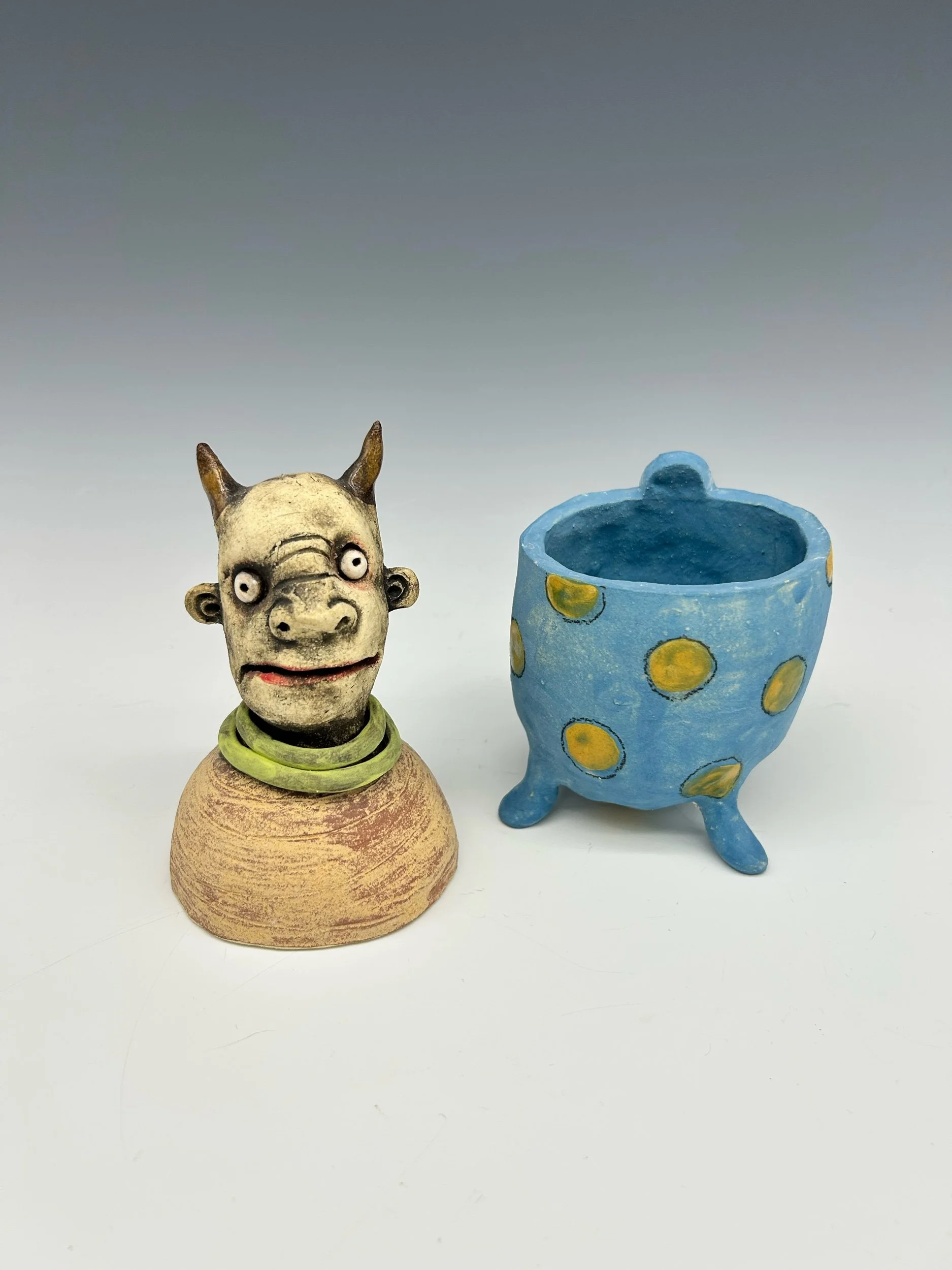 Available Work › Monster vessel Image 1 of 5 Image 2 of 5 Image 3 of 5 Image 4 of 5 Image 5 of 5 Monster vessel $500.00 What better place to hide baby teeth or earrings?Stoneware Paperclay, 8 1/2 x 4 x 4 Purchase Added! What better place to hide baby teeth or earrings?Stoneware Paperclay, 8 1/2 x 4 x 4